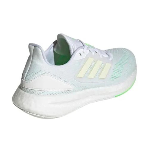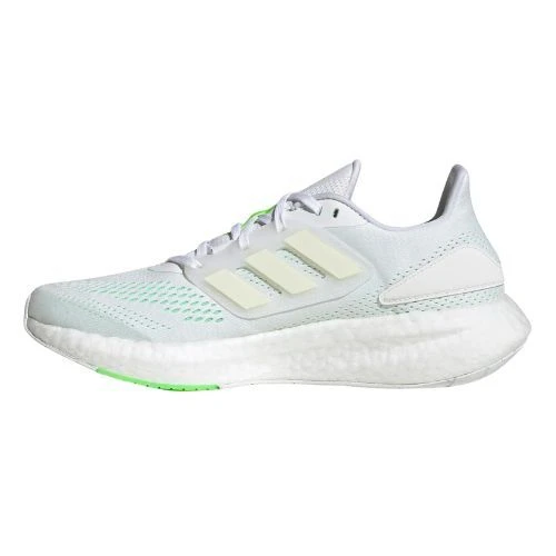 Beim Obermaterial, der kleinen Schwester des adidas Ultraboost 22, gibt es keine wesentlichen Änderungen. Es wird nach wie vor ein dünnes und atmungsaktives Netz verwendet, das sich außerdem dadurch auszeichnet, dass es zu mindestens 50 % aus recycelten Materialien besteht. Der Pureboost 22 ist jetzt mit einem externen Stabilisator im Fersenbereich ausgestattet, der den Fuß besser stützt und somit für einen festeren Tritt sorgt.