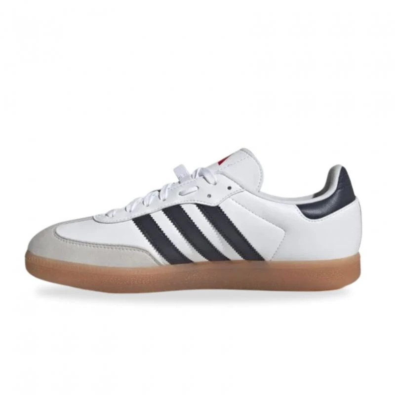 Was die Zunge betrifft, so ist uns das adidas in Rot aufgefallen, das im Gegensatz zum adidas samba, der nicht zu den Originalmodellen gehört, das 3 anstelle des Kleeblatts trägt.