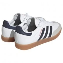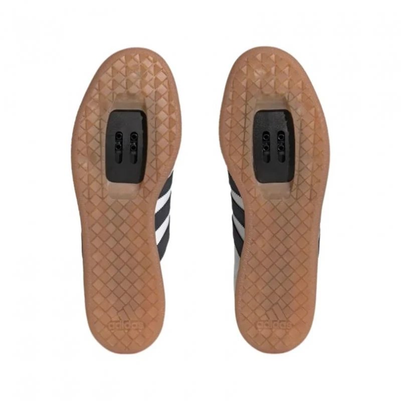 An der Außensohle sehen wir die doppelte Verstärkung, die die Höhe im Vergleich zum adidas Samba verdoppelt. Dieses Design wurde durch die Einführung der Zwei-Schrauben-Stollen an jedem Fuß geschaffen, um sowohl Radfahren als auch Laufen zu können. Diese Stollen sorgen für eine effizientere und sicherere Fahrt mit dem Fahrrad.