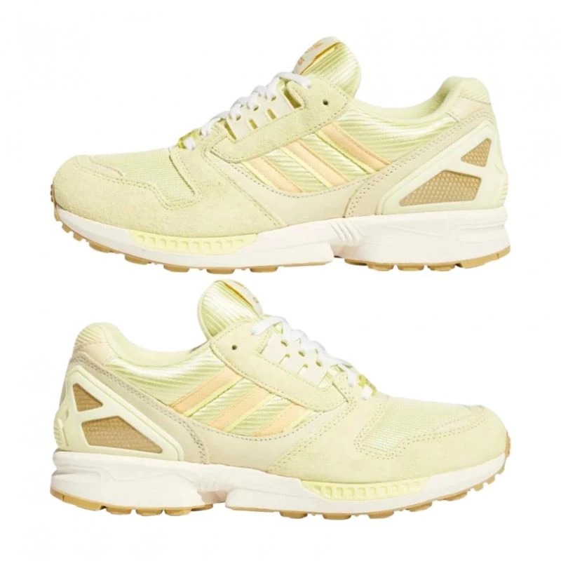 Mit einer Farbe in verschiedenen Gelbtönen je nach Bereich des Schuh (mit Ausnahme der Schnürsenkel, die weiß sind), ist der adidas ZX 8000 für all diejenigen gedacht, die nicht den ganzen Tag unbemerkt bleiben wollen, sowie einen Schuh aus einer der exklusivsten Serien von Adidas tragen.