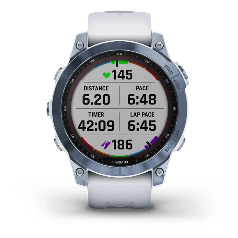 Die Fenix 7 zeichnet sich auch durch ihr umfassendes Gesundheits- und Fitness-Tracking aus. Wie alle hochwertigen GPS-Sportuhren verfügt sie über vorinstallierte Aktivitätsprofile für running, running, Schwimmen, Radfahren, Wandern, Rudern, Skifahren, Golf, Surfen, Indoor-Klettern und vieles mehr. Darüber hinaus bietet es auch ein Tracking für hochintensive Intervalltrainingseinheiten (HIIT) und sogar Vorschläge für Ihr tägliches Training, das sich an Ihre Vorlieben, aber auch an Ihr aktuelles Fitnessniveau anpasst.