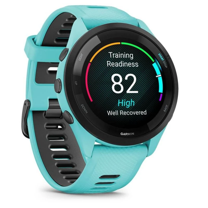 Die Forerunner 265 wurde entwickelt, um das allgemeine Wohlbefinden rund um die Uhr zu überwachen. Sie verfügt über einen Pulsox-Sensor am Handgelenk, eine Körperbatterie-Energieüberwachung, fortschrittliche Schlafüberwachung und -bewertung, Stressüberwachung, Menstruationszyklusüberwachung und Schwangerschaftsüberwachung, um nur einige Beispiele zu nennen.