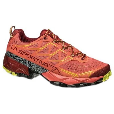 Die Sohle des La Sportiva Akyra Schuhs besteht aus hochfestem Gummi und einem Multi-Terrain-Design, das es dem Schuh ermöglicht, sich an die Anforderungen des running anzupassen. Die Laufsohle besteht aus einer Mischung namens FriXion XT Red, die in zwei Dichten hergestellt wird, wobei der innere Zehen- und Fersenbereich härter ist, so dass die Sohle Abrieb und Abnutzung standhalten kann.