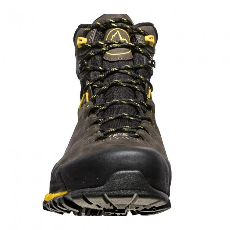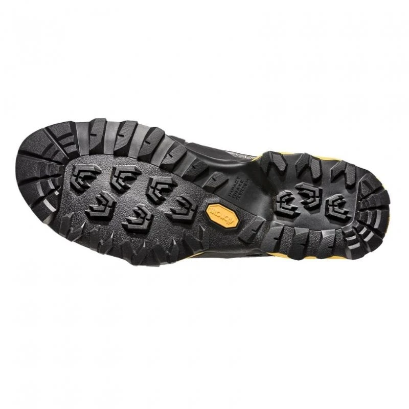 Der La Sportiva TX5 GTX verfügt über eine besonders griffige Vibram MegaGrip-Mischsohle mit Impact Break System mit unterschiedlicher Stärke, die bergauf den Grip erhöht und bergab den Halt bewahrt.