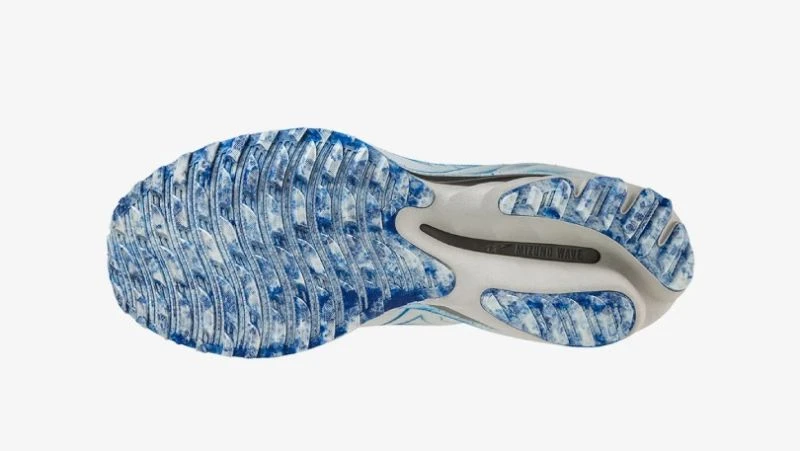 Wir werden uns hauptsächlich auf seine innovative Zwischensohle konzentrieren , die 3 zu berücksichtigende Elemente enthält. Zwei verschiedene Arten von Schaum in seiner Zusammensetzung und die Wave Plate. Beachten Sie, dass es sich nicht um eine Kohlenstoffplatte handelt, sondern um eine Platte mit plastifiziertem Touch, die jedoch aus Rizinusöl besteht. Wir finden MIZUNO ENERZY Lite Schaumstoff in der Zwischensohle (die gesamte obere Schicht der Zwischensohle). Ein sehr leichter Schaum. Und MIZUNO ENERZY unter der Wave Plate, reaktionsfreudiger.