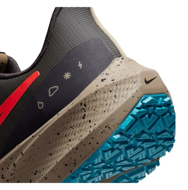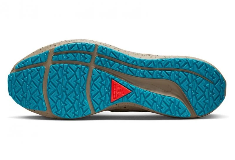 Was die Außensohle betrifft, so verfügt der Nike Pegasus 39 Shield über ein Storm-Tread-Profil, das die Traktion auf nassen Oberflächen verbessert. Inspiriert von Winterreifen, enthält dieses Profil Mikrorillen und multidirektionale Elemente, die einen besseren Halt auf dem Boden ermöglichen und gleichzeitig das Wasser ableiten. Dies sorgt für einen besseren Kontakt mit dem Boden.