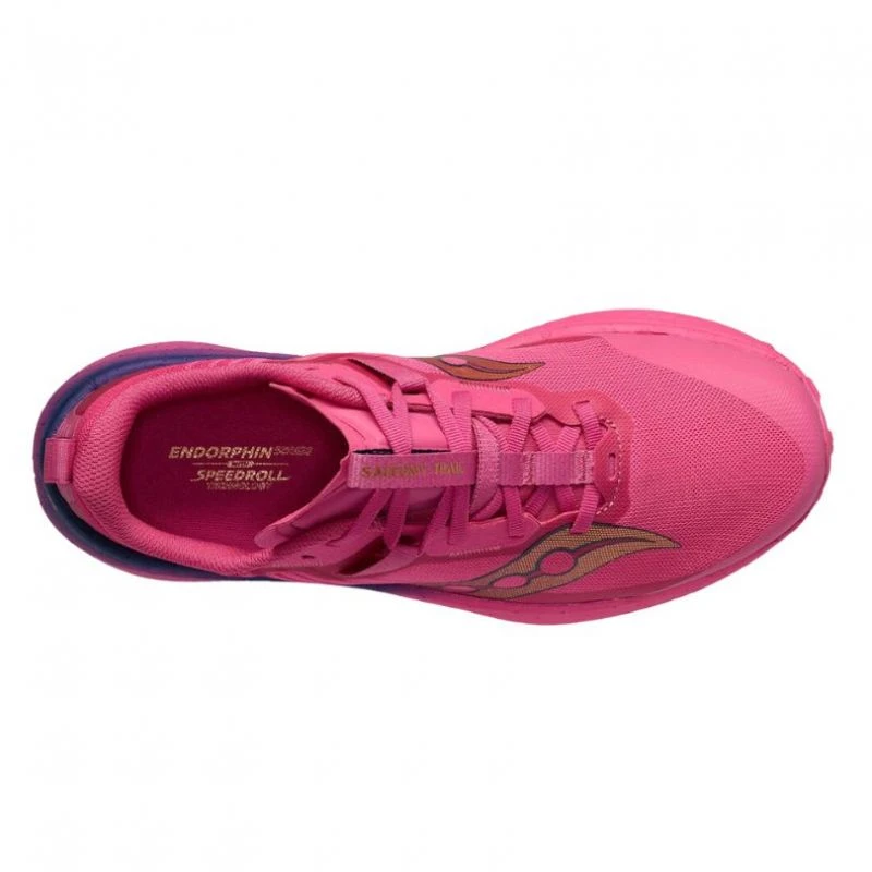 Auf der anderen Seite wird das Schutzniveau des Saucony Endorphin Edge durch die exklusive PWRTRAC-Technologie für erhöhte Traktion und Grip auf unterschiedlichem Terrain garantiert. Die Anti-Scuff-Platte bietet zusätzlichen Schutz.