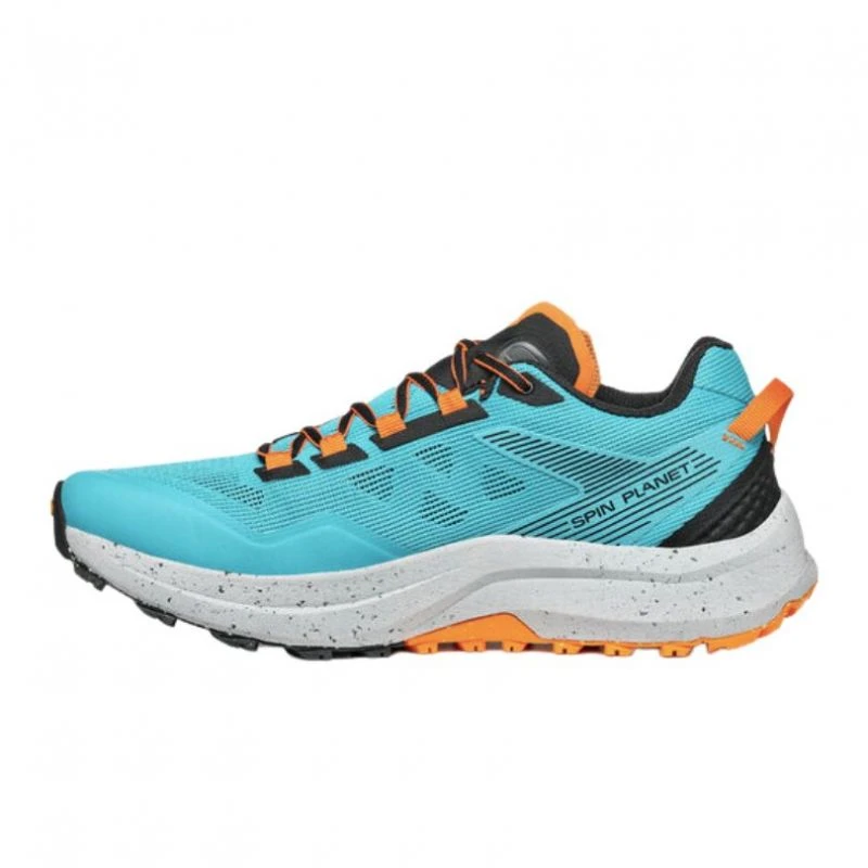 Der Scarpa Spin Planet ist ein Trainingsmodell mit 4 Millimetern drop und einem Schaumstoff, der an der Ferse 28 Millimeter dick ist. Eine Eigenschaft, die zusammen mit dem Gewicht von 305 Gramm , mit dem er auf den Markt kommt, perfekt für mittelschwere Läufer über 75 Kilo ist, die ein gedämpftes und sicheres Modell suchen.