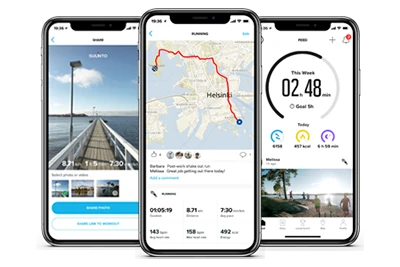 Der Suunto 9 ist mit der neuen Suunto App kompatibel, die Ihr Training, Ihre täglichen Aktivitäten und Ihren Schlaf aufzeichnet. Außerdem können Sie Ihre Trainingsprotokolle mit anderen teilen und sich mit anderen in der Suunto austauschen.